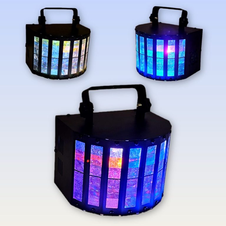 Wenig Platz für viel Licht mit beeindruckenden Farbeffekten, rotierenden Derbys und bewegten Beams.